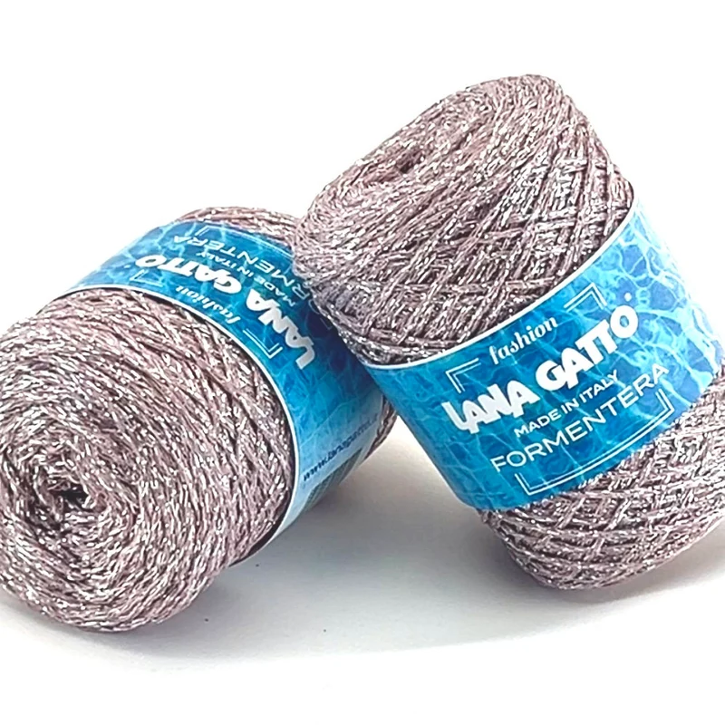 Эта модная пряжа производится в Италии и отличается исключительной мягкостью и блеском. Блестящий эффект, еще более заметен при работе спицами и крючком, достигается благодаря высокому содержанию серебряного люрекса. Цепная нить обеспечивает быструю и плавную работу над созданием легких изделий таких как, топы, футболки, платья, юбки.